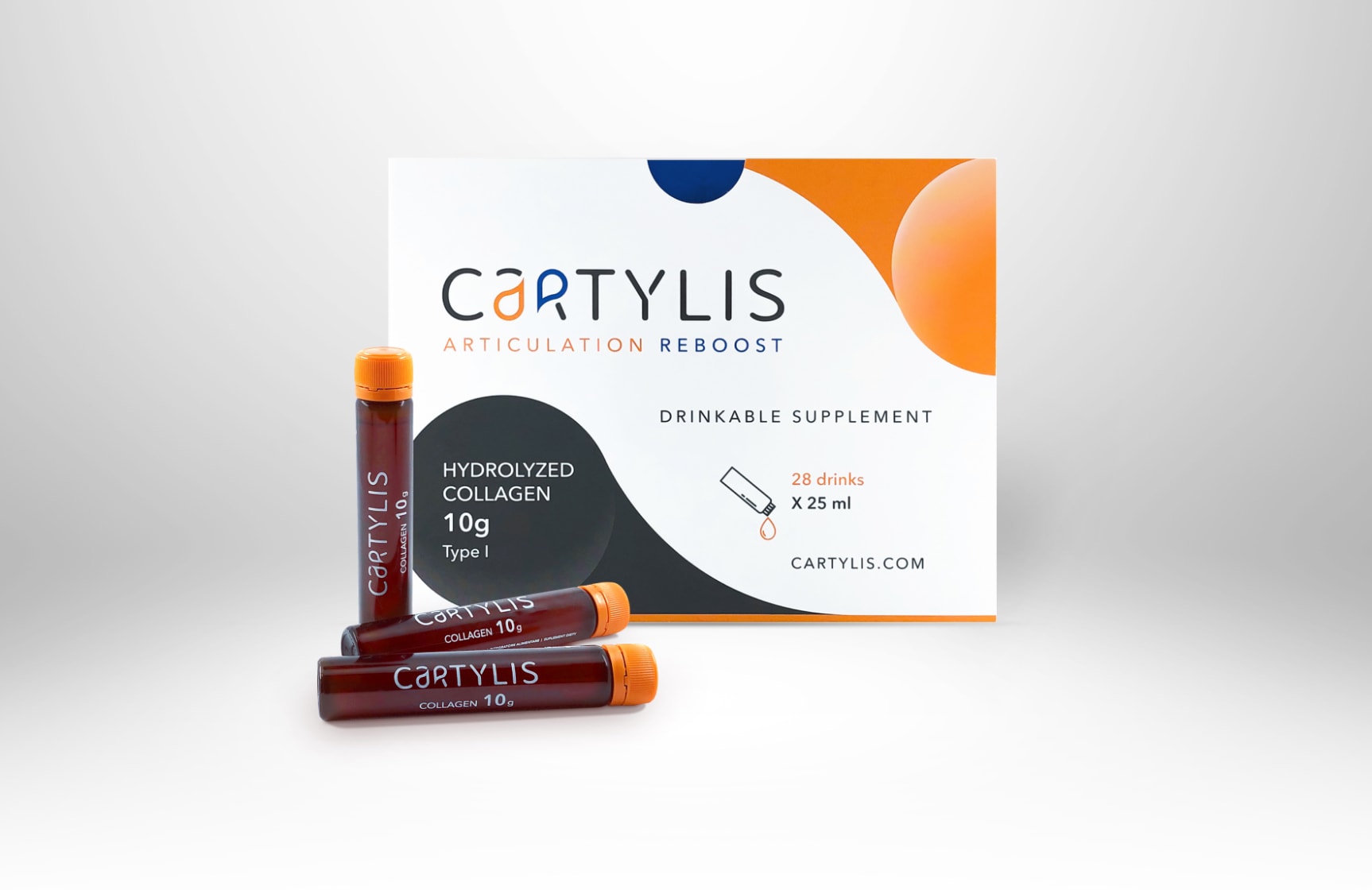CartylisTM is a drinkable food supplement providing a boost for joints. Each pack contains 28 vials of 25ml.